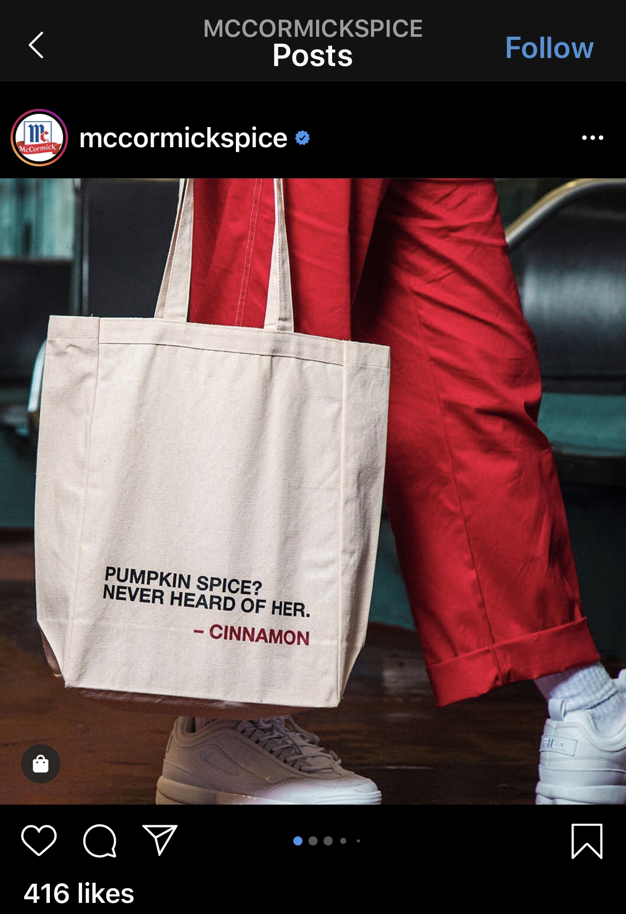 I naturally engaged and dove deeper into a century old spice brand’s page. That’s an oxymoron for sure! I was soon disappointed to find the campaign was about recognizing women named Cinnamon. Because, where’s the connection to Pumpkin Spice Latte anymore?! A major disconnect.
