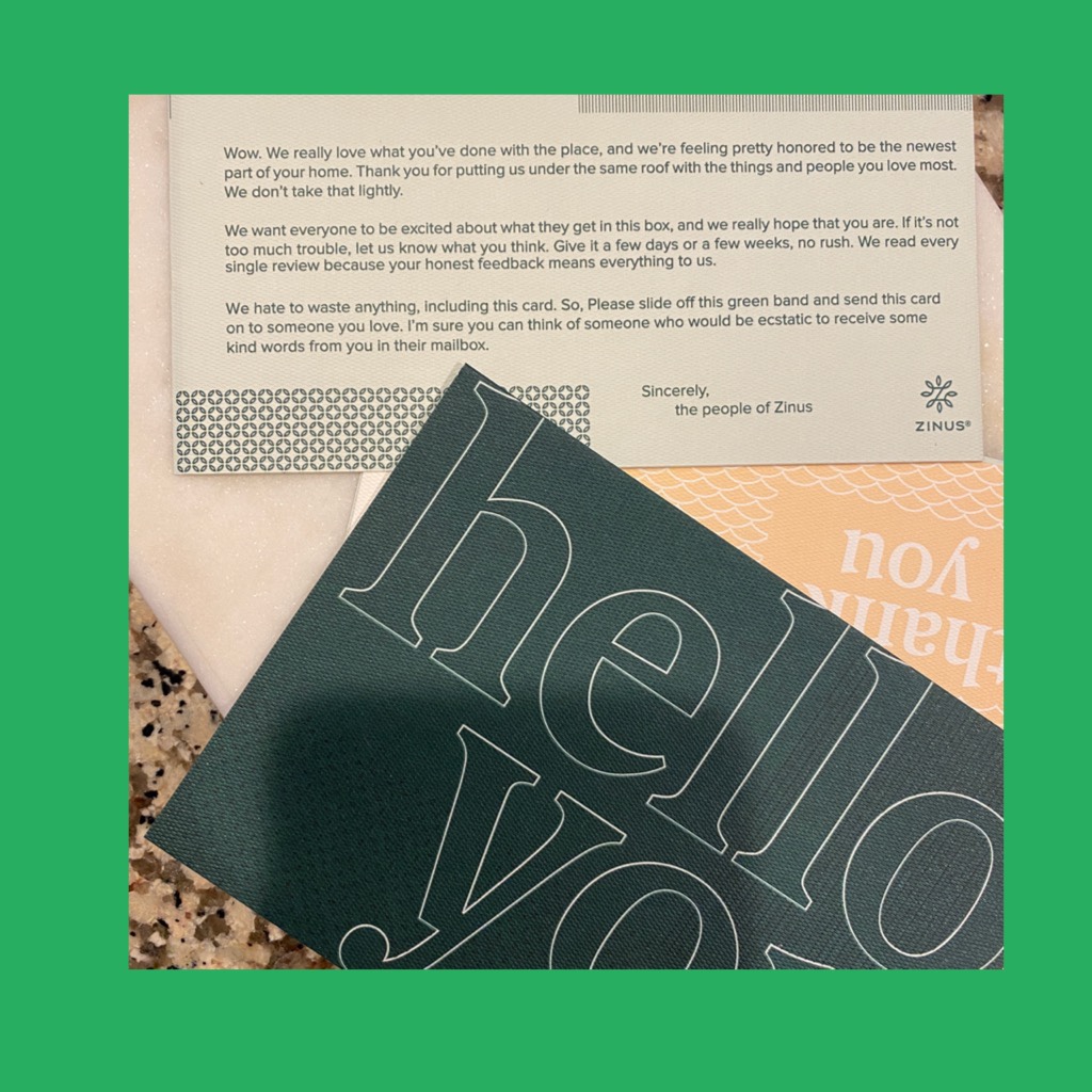 I’m engaged and delighted. I feel a personal bond to Zinus now because their personality is so clear. I’ll be sending one of these cards to them.